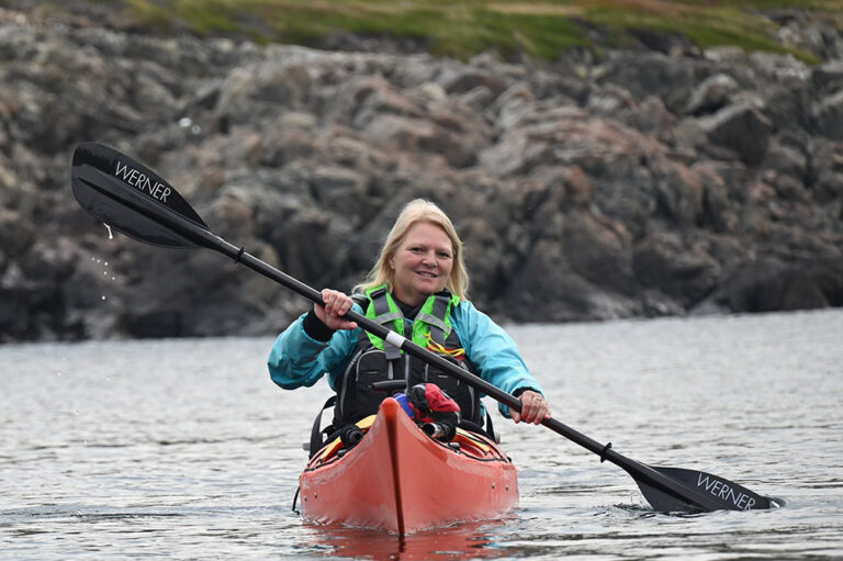 Paula, born and raised in Grand Bank, Newfoundland, spent many a day on the water with her father and family. After raising her own family of four girls, she has returned to the adventuring and exploring of nature she enjoyed in her youth. With a profound love of kayaking, she earned a Level 2 Paddle Canada (PC), a level 1 PC instructor, and is a certified PC kayak rolling instructor. She is also certified in Wilderness First Aid and believes in the importance of safety in nature, both on land and on the water.